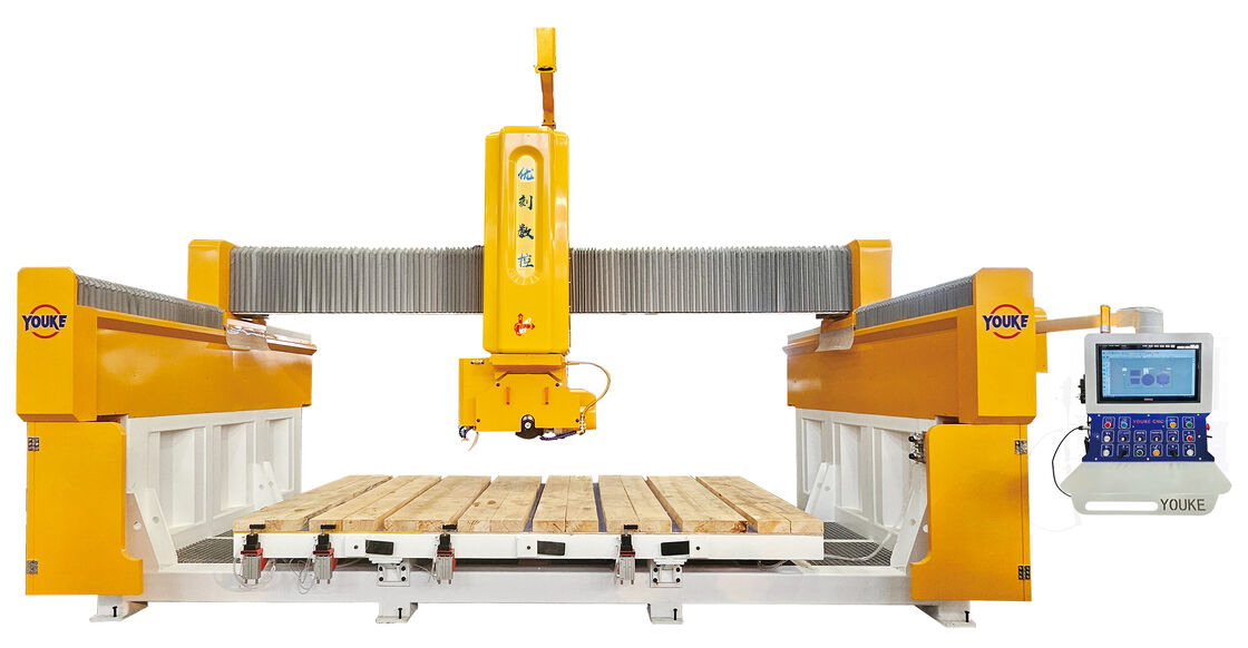 هذه الآلة عبارة عن آلة قطع جسرية مصممة خصيصًا بخمسة محاور، تم هندستها للقطع الدقيق وتشكيل الألواح القياسية والأشكال المعقدة وغير المنتظمة. إنها قادرة على معالجة مجموعة واسعة من الأشكال الهندسية، بما في ذلك المضلعات والمثلثات والأشكال المروحية وأسطح العمل والقطوع الناقصية والمعينات والدوائر وحواف الأنف الثوري والتشطيبات بزوايا عشوائية، بالإضافة إلى الخطوط المستقيمة والمنحنية. بفضل سرعة القطع العالية والدقة الاستثنائية وسهولة التشغيل، فهي مثالية لمعالجة مواد مثل الحجر الملبد والرخام والجرانيت وحجر الكوارتز وقطع العمل الأخرى غير المنتظمة أو ذات الأشكال المخصصة.